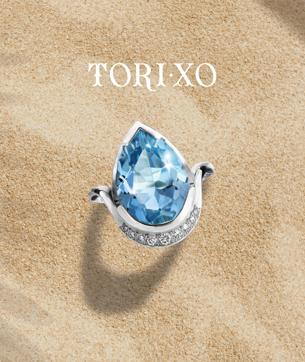 Blue topaz united with shining silver sunbeams. The appearance of sunlight dancing on the ocean is effortlessly captured in this collection. A peaceful sky reflected in the motion of the glistening sea.